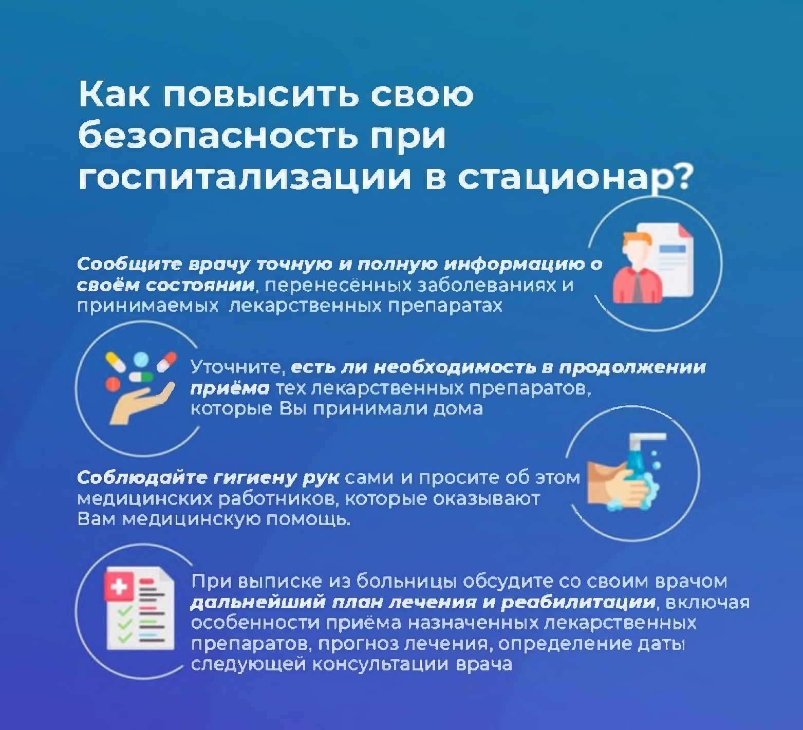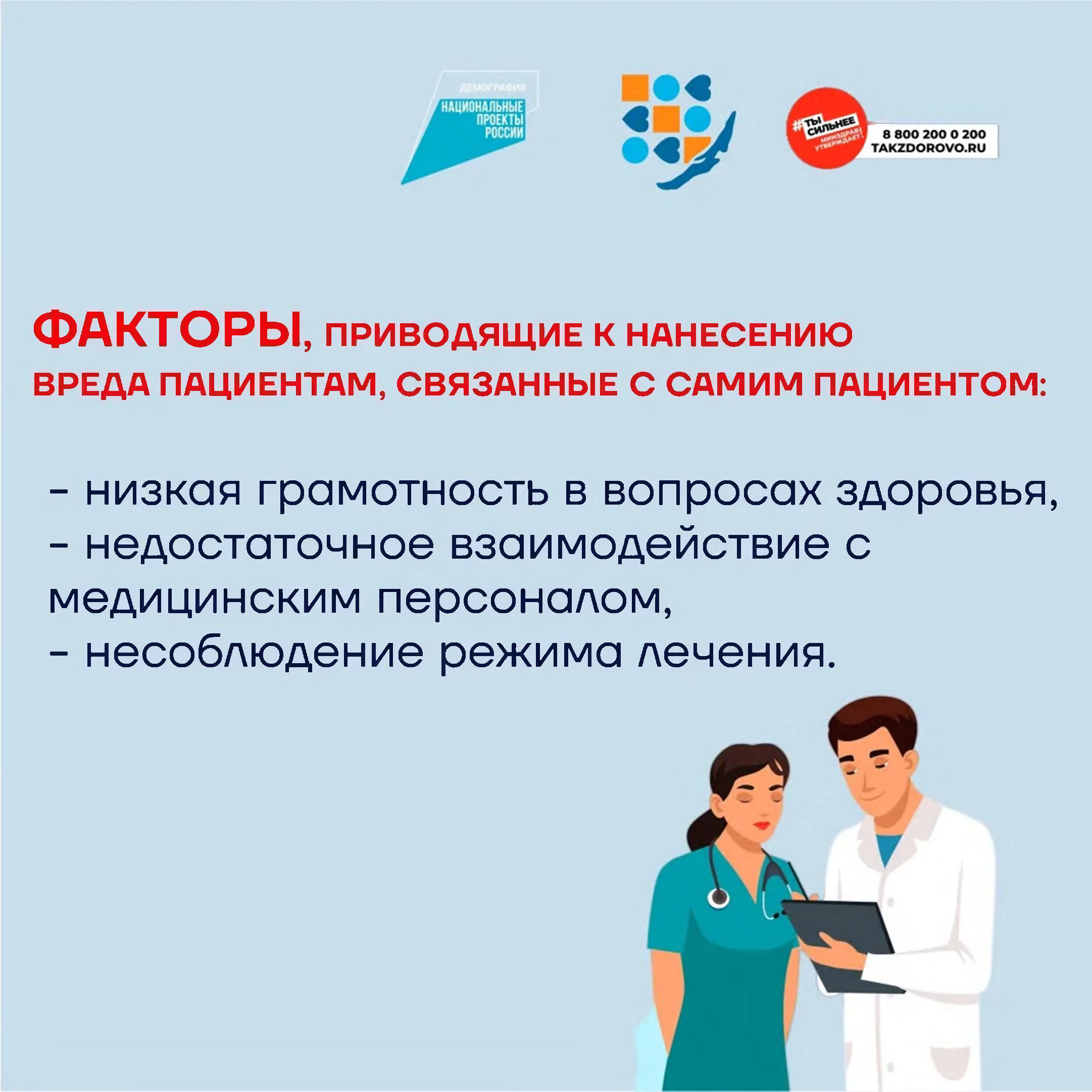 Несмотря на высокие достижения современной медицины, при лечении заболеваний все еще существуют риски для пациентов. Мировые исследования свидетельствуют: активное участие пациентов в процессе лечения улучшает КАЧЕСТВО и БЕЗОПАСНОСТЬ медицинской помощи.